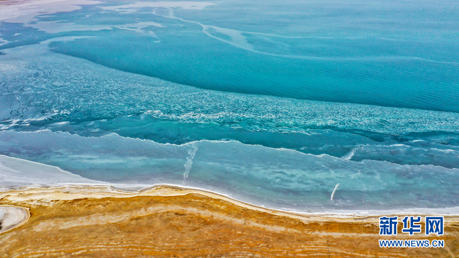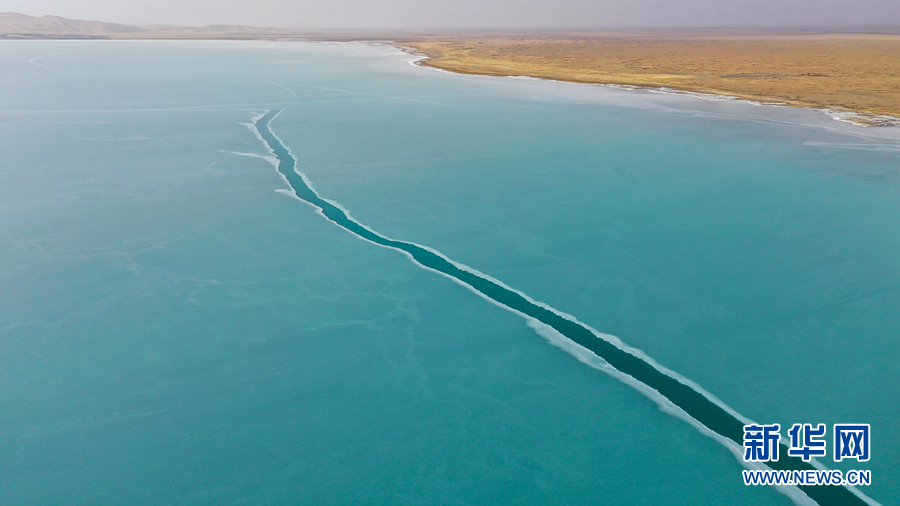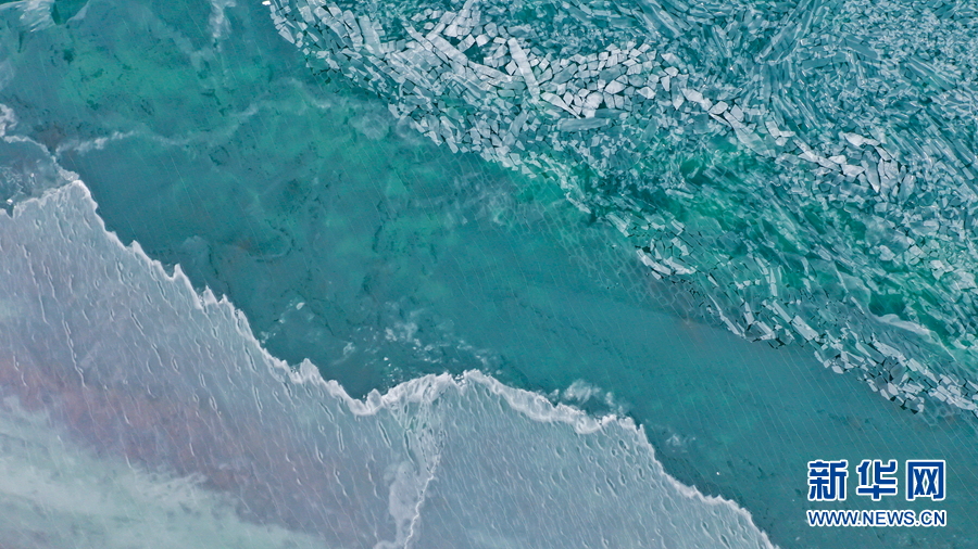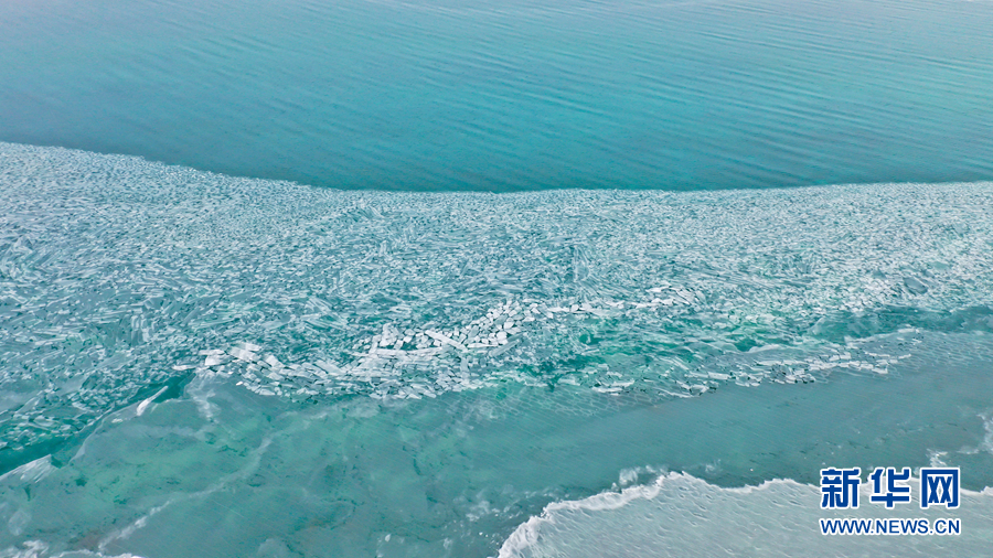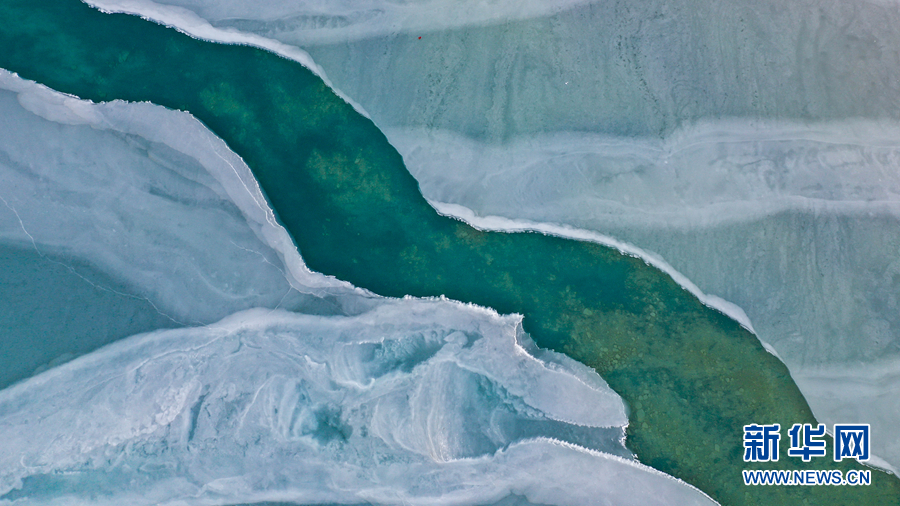封凍的湖面如同破碎的“玉帶”,形成獨(dú)特的景觀。新華網(wǎng) 宋忠勇 攝