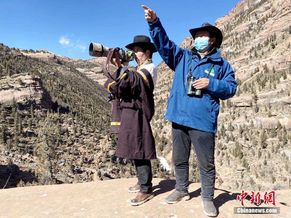圖為1月27日(正月初六)達杰朋措(左)和生態(tài)管護員巡護瀾滄江源園區(qū)時拍攝野生動物。仁青達杰 攝