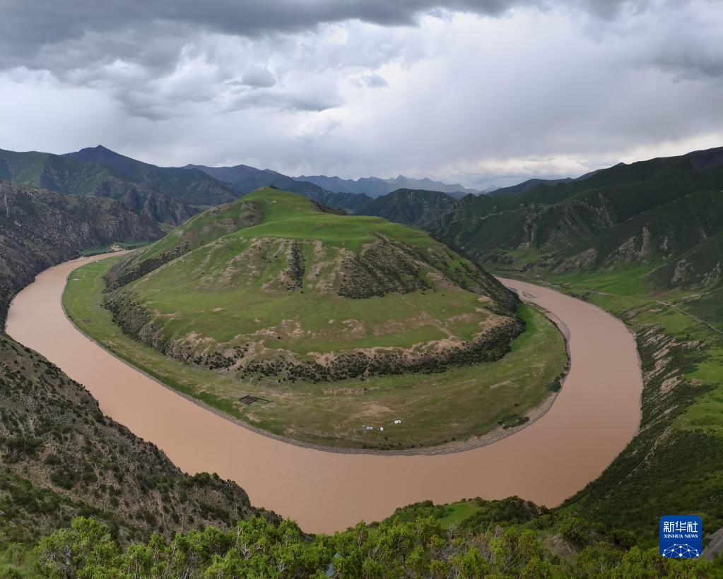 在青海省玉樹藏族自治州治多縣拍攝的“萬里長江第一灣”(2021年7月23日攝)。新華社記者 呂雪莉 攝