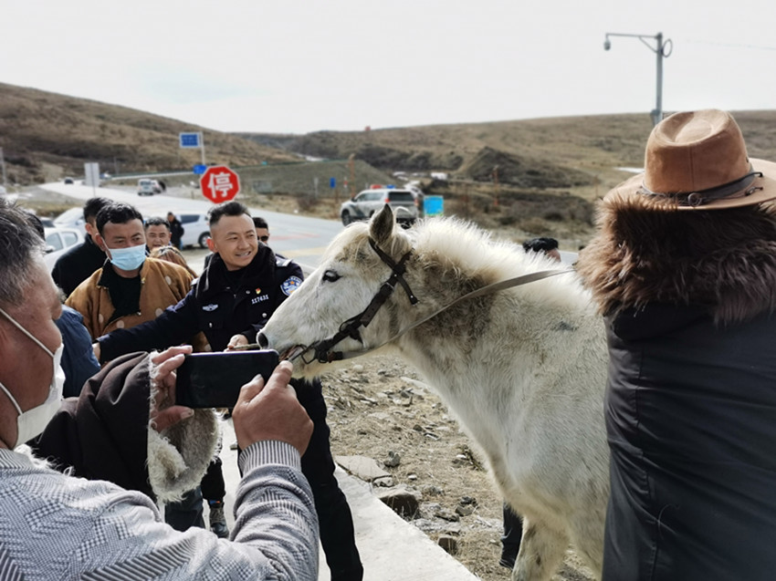 當辦案民警和載運馬匹的車輛到達下雄鄉(xiāng)派出所時,備好哈達、錦旗的牧民群眾早已等候多時,劉鵬和其他三位辦案民警一下車便被牧民們團團圍住,他們紛紛上前獻哈達、錦旗,和辦案民警握手,場面熱鬧而溫馨。達瓦感慨:“下雄鄉(xiāng)派出所的民警日夜兼程,跨了四個省、跑了三千里路,把我們的七匹馬找回來了。真的很感謝,如果沒有他們,我們連馬的影子都見不到?!?/p>