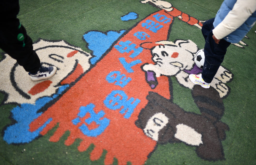 3月1日,在玉樹(shù)州治多縣,城南幼兒園小朋友在幼兒園的球場(chǎng)上。新華社記者 張宏祥 攝