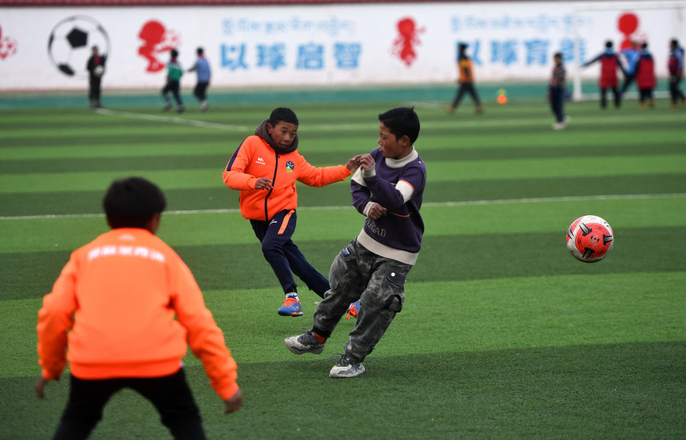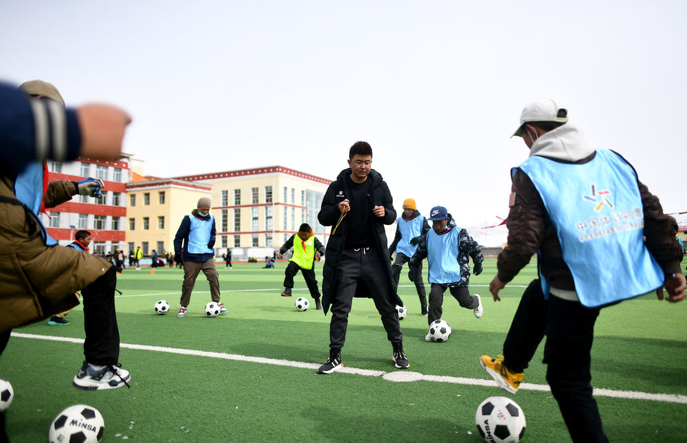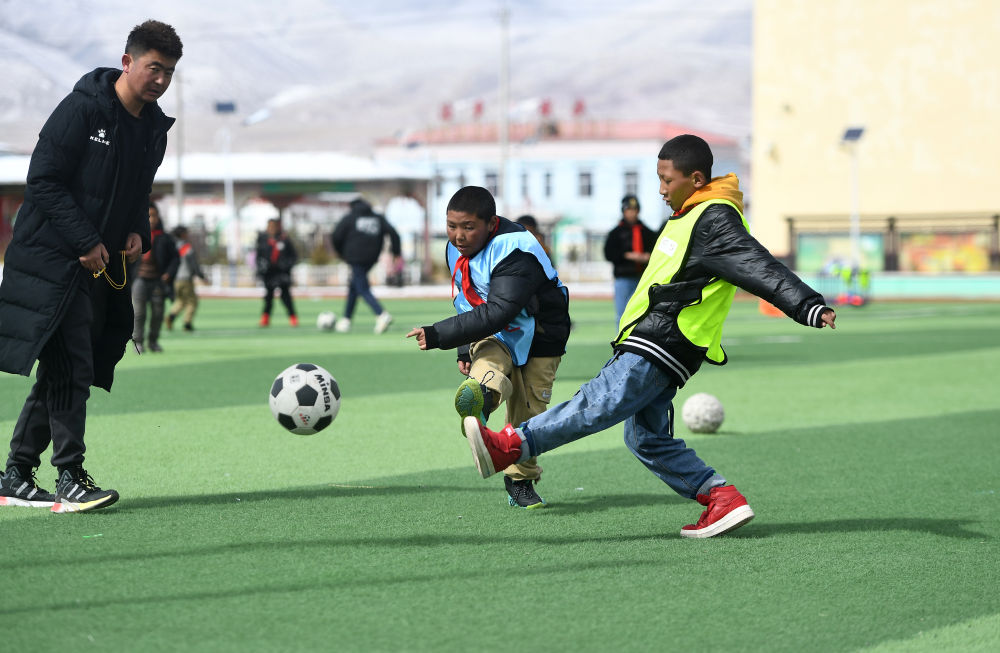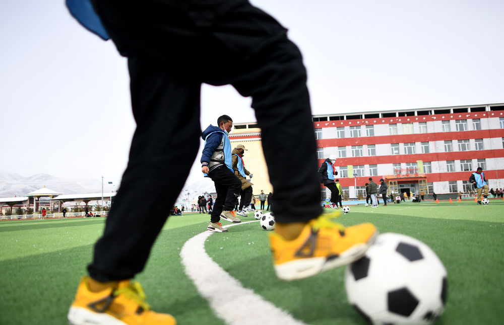 3月1日,在玉樹(shù)州治多縣,吉尕小學(xué)學(xué)生在足球訓(xùn)練課上。新華社記者 張宏祥 攝