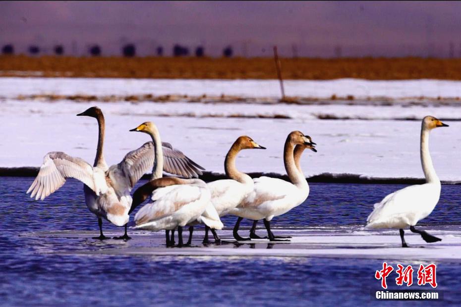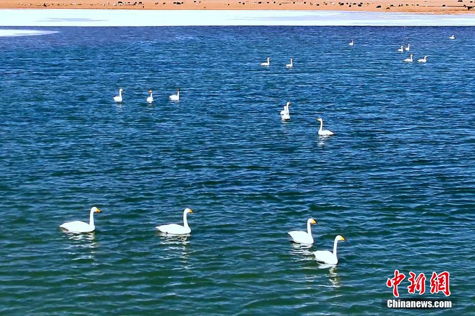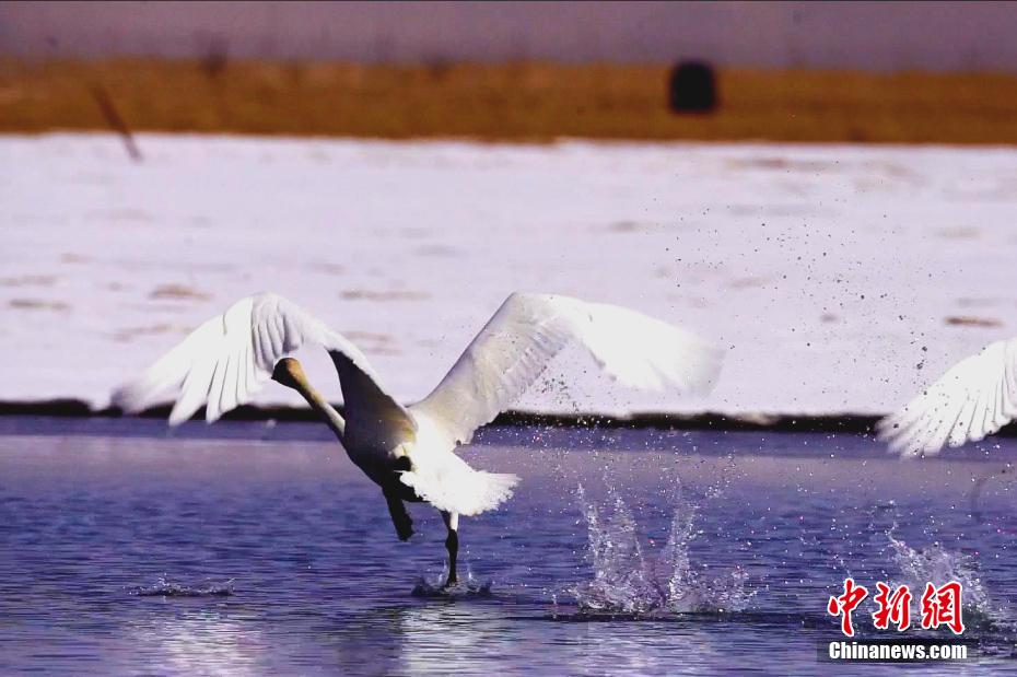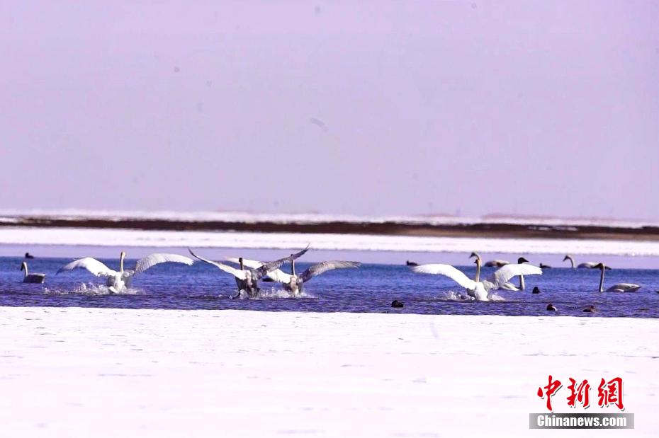 高原初春,在素有“高原藍(lán)寶石”之稱的青海湖,記者拍攝到成群大天鵝在湖面上練習(xí)起飛、降落、滑行。青海國(guó)家公園觀鳥(niǎo)協(xié)會(huì)會(huì)長(zhǎng)王艦艇介紹,每年3月中旬,在青海越冬的大天鵝都會(huì)踏上北遷繁殖路。目前在青海湖的大天鵝多為青海東部黃河流域的“冬候鳥(niǎo)”,在青海湖短暫停留后北遷到夏季繁殖地,在秋末初冬時(shí)又會(huì)“舉家”回歸來(lái)到越冬地。大天鵝屬雁形目鴨科天鵝屬,為國(guó)家二級(jí)重點(diǎn)保護(hù)野生動(dòng)物,在國(guó)內(nèi)主要繁殖于新疆巴音布魯克,主要越冬地有天津及河北沿海、山東榮成和東營(yíng)、黃河中下游濕地、甘肅、青海、新疆等地。青海湖作為大天鵝的主要越冬地之一,開(kāi)闊的湖面、涌流的泉水與充足的食物為大天鵝提供了適宜的棲息環(huán)境。