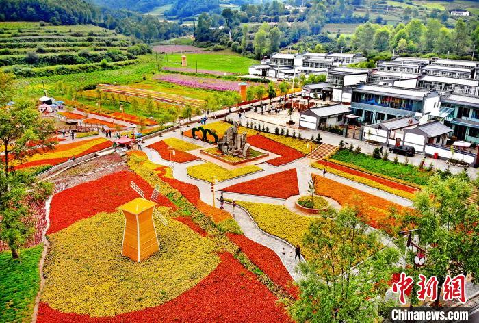 圖為航拍甘肅甘南藏族自治州碌曲縣尕秀村村貌。(資料圖) 楊艷敏 攝
