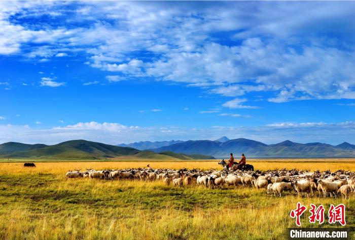 圖為瑪曲縣阿萬倉鎮(zhèn)草原牧民在放牧。鐘建龍 攝
