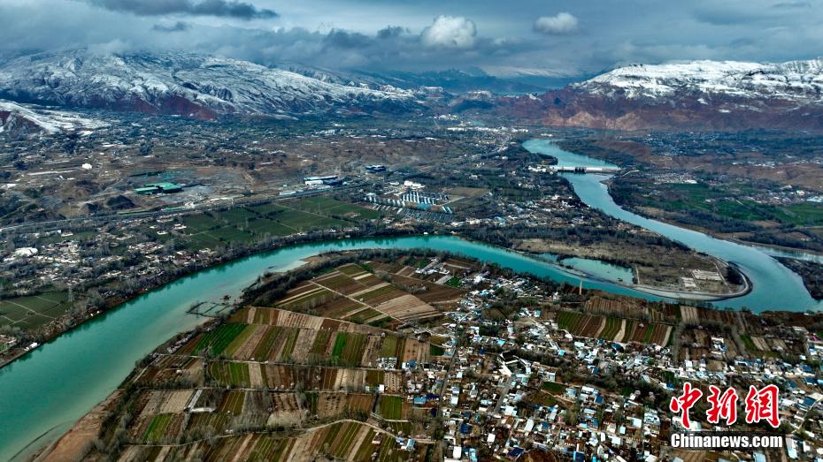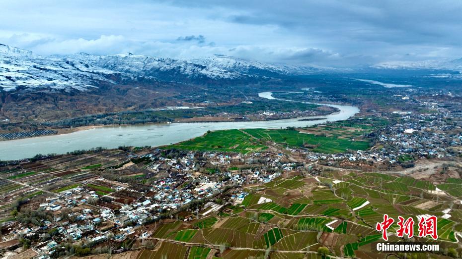 4月3日,結(jié)束“觀鳥季”不久的青海省化隆縣黃河谷地,杏花等果花漸次綻放,與遠(yuǎn)山皚皚白雪、耕地返青麥苗以及翡翠般的黃河,勾勒一幅高原春日圖景。黃河流經(jīng)化隆縣168公里,當(dāng)?shù)攸S河水質(zhì)清澈,氣候溫暖。圖為航拍青海省化隆縣境內(nèi)的黃河。