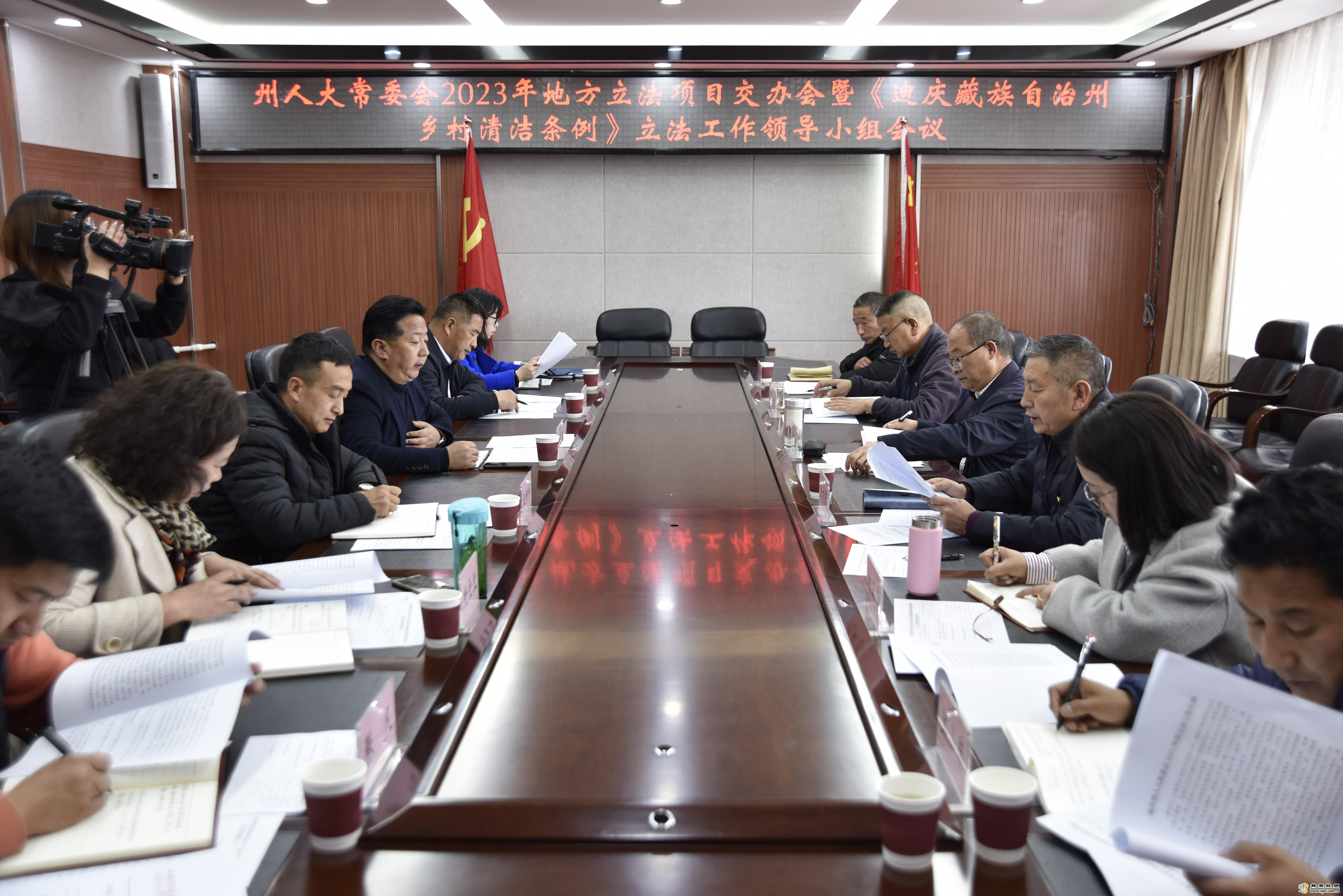 4月3日,州人大常委會地方立法項目交辦會暨《迪慶藏族自治州鄉(xiāng)村清潔條例》(以下簡稱《條例》)立法工作領(lǐng)導(dǎo)小組會議在州人大常委會主任會議室召開。