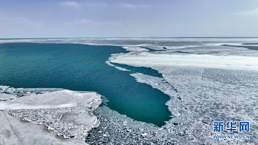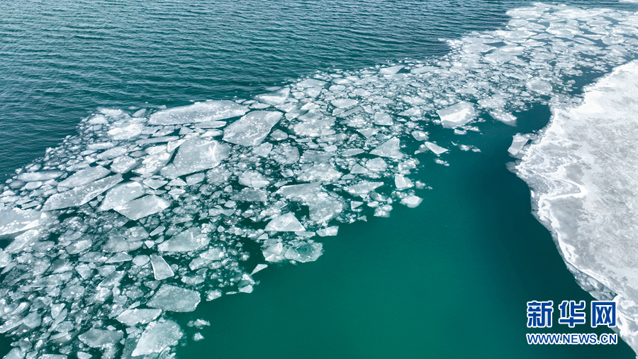 這是4月8日拍攝的青海湖開湖景觀(無人機(jī)照片)。新華網(wǎng) 宋忠勇 攝