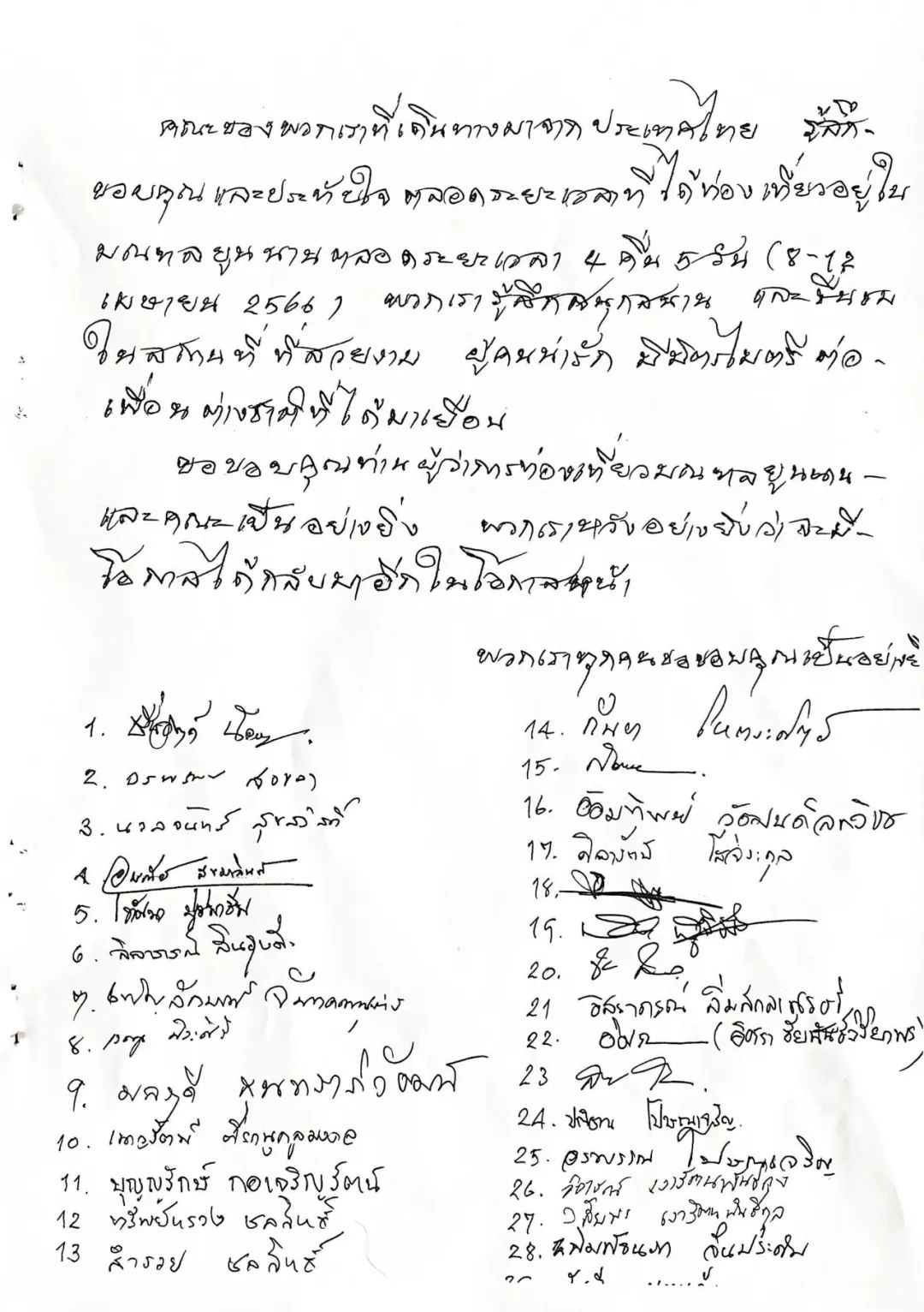 紙短情長(zhǎng)!一封寫(xiě)有30位泰國(guó)游客名字的感謝信