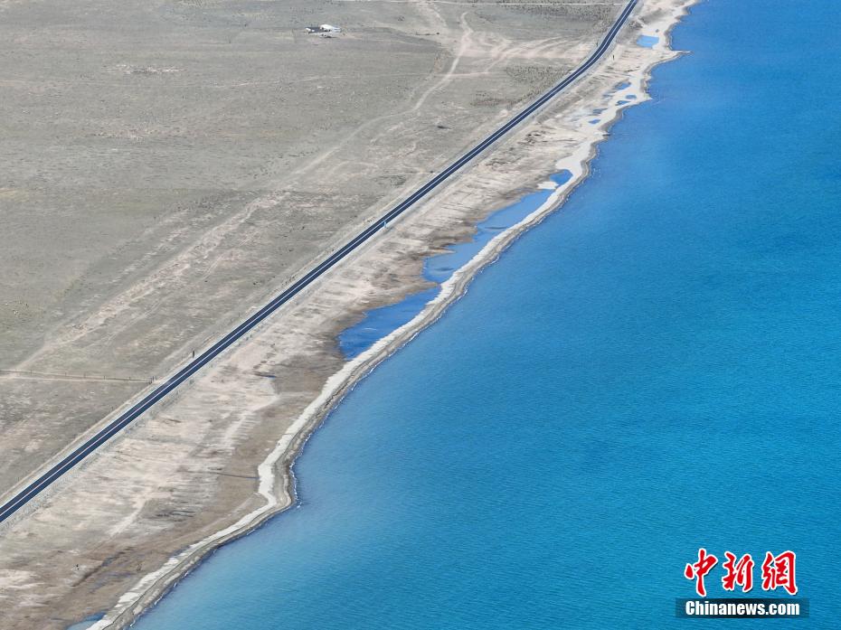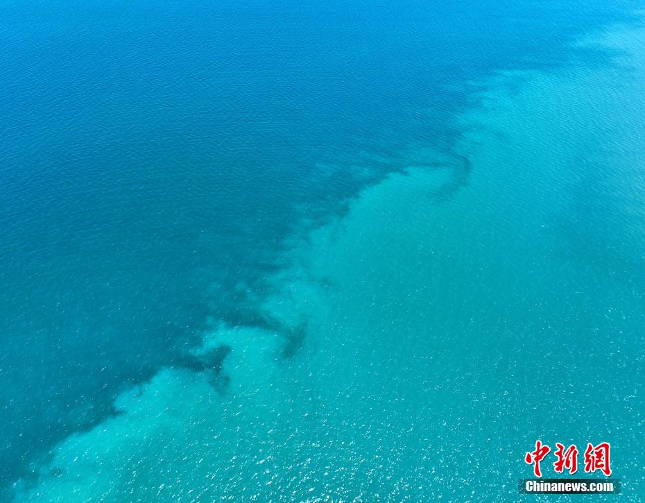 暮春時節(jié),素有“高原藍寶石”之稱的青海湖天高云淡、波光粼粼。遠處的山與碧藍的湖水交相輝映,宛如油畫,美不勝收。圖為航拍青海湖水天一色。