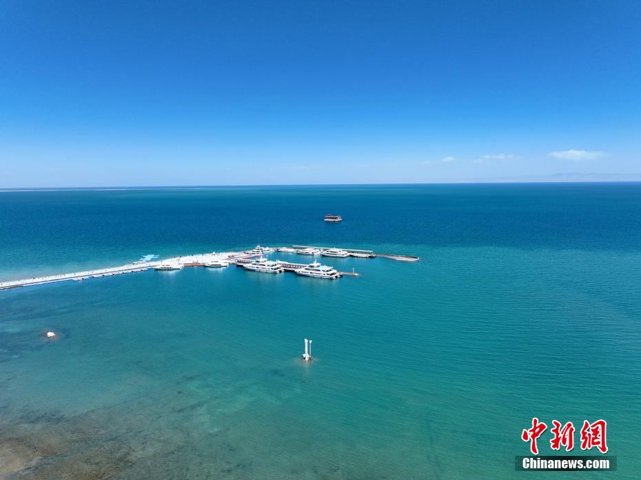 航拍青海湖二郎劍景區(qū)碼頭。