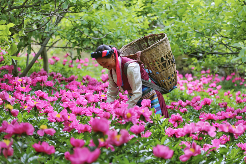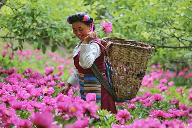 五月,正是芍藥花開的最佳時(shí)節(jié)。在維西縣塔城鎮(zhèn)其宗村村民楊小花家的芍藥地中,大片的芍藥花競相開放,花團(tuán)錦簇、花香四溢,楊小花正在田間忙碌著采摘芍藥花朵,芍藥花及根采挖后都可出售,在增加收入的同時(shí)也成為田間地頭一道美麗的風(fēng)景線。