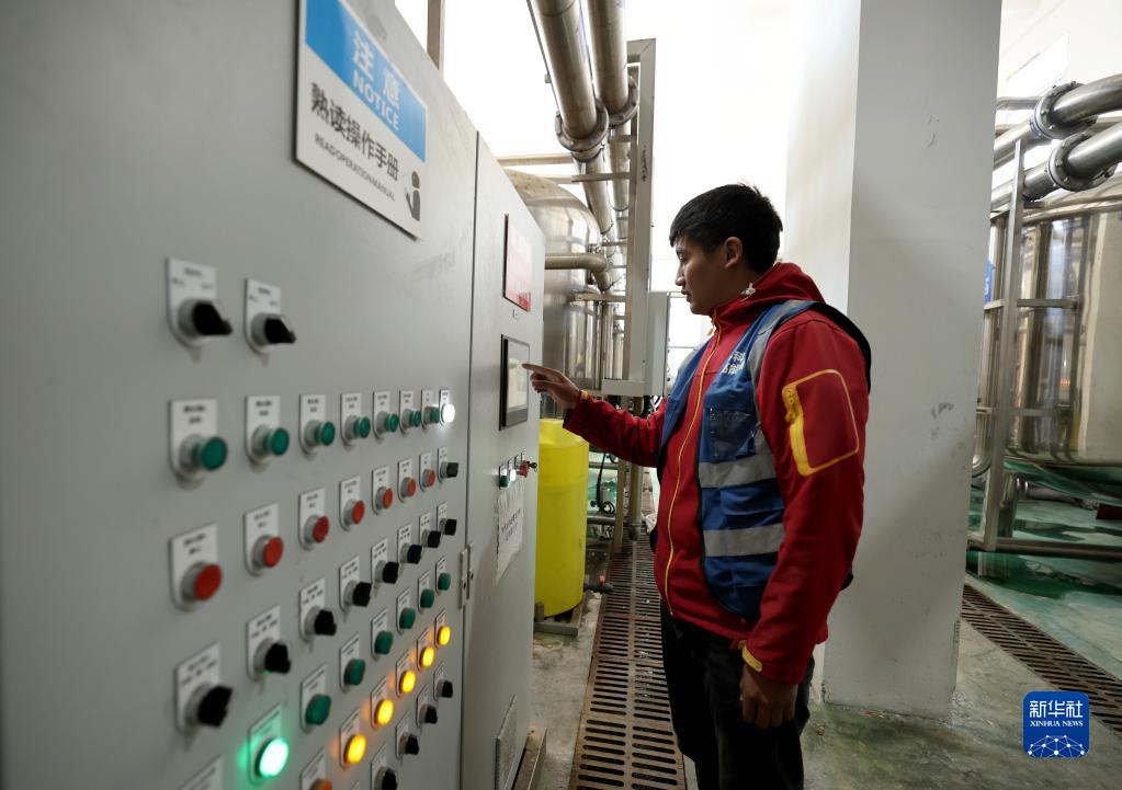 4月22日,在高海拔宇宙線觀測(cè)站觀測(cè)基地水處理機(jī)房,工作人員在操作水處理相關(guān)程序。新華社記者 金立旺 攝