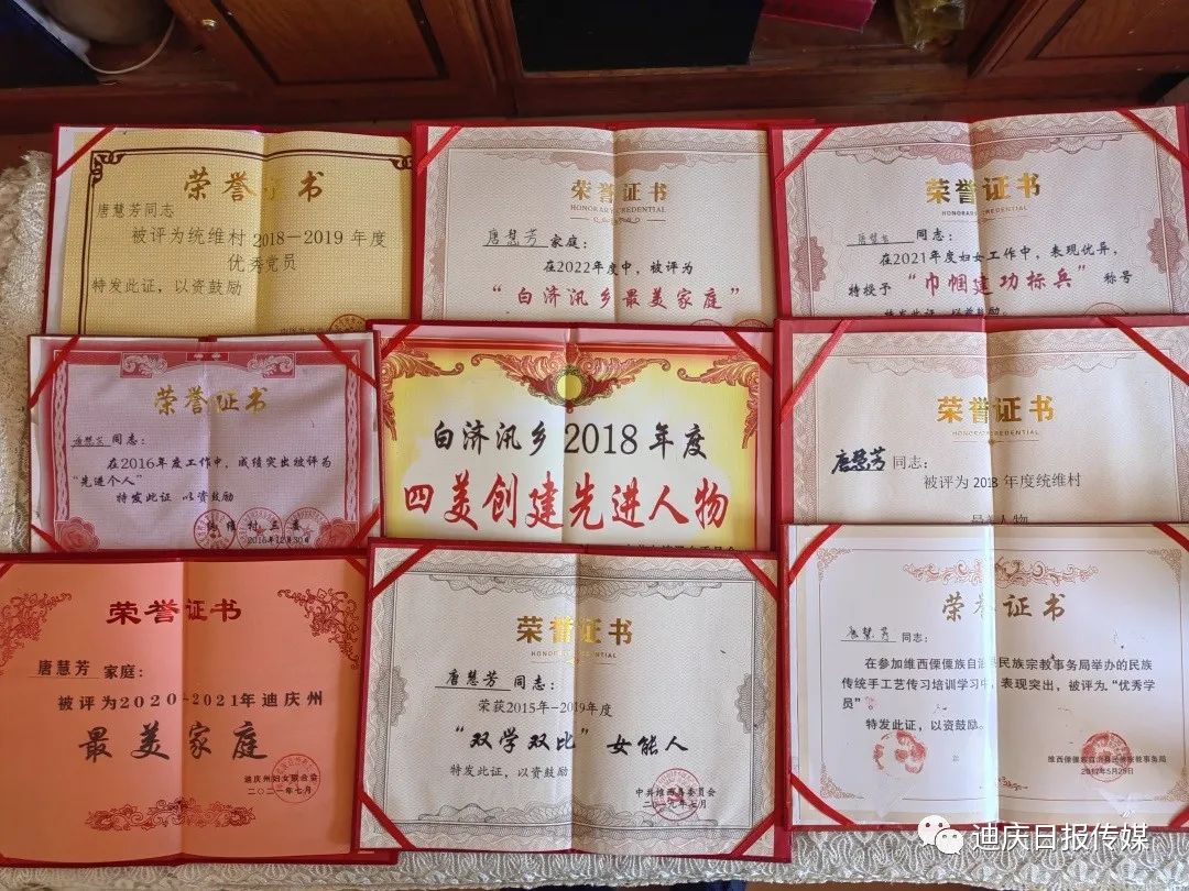 唐慧芳孝老愛親的精神不僅讓自己的公公婆婆能夠安享晚年幸福生活,也用實(shí)際行動(dòng)感染了晚輩。她的家庭多次被州婦聯(lián)評定為“最美家庭”,她多次被縣、鄉(xiāng)、村評定為“最美人物”“雙學(xué)雙比”女能人、“優(yōu)秀黨員”“巾幗建功標(biāo)兵”“先進(jìn)個(gè)人”。她用她的樸實(shí)真誠詮釋著中華兒女尊老愛老、孝老愛親的優(yōu)秀品質(zhì),她用她的無私奉獻(xiàn)踐行了一名共產(chǎn)黨員甘當(dāng)群眾的“貼心人”的莊嚴(yán)承諾!