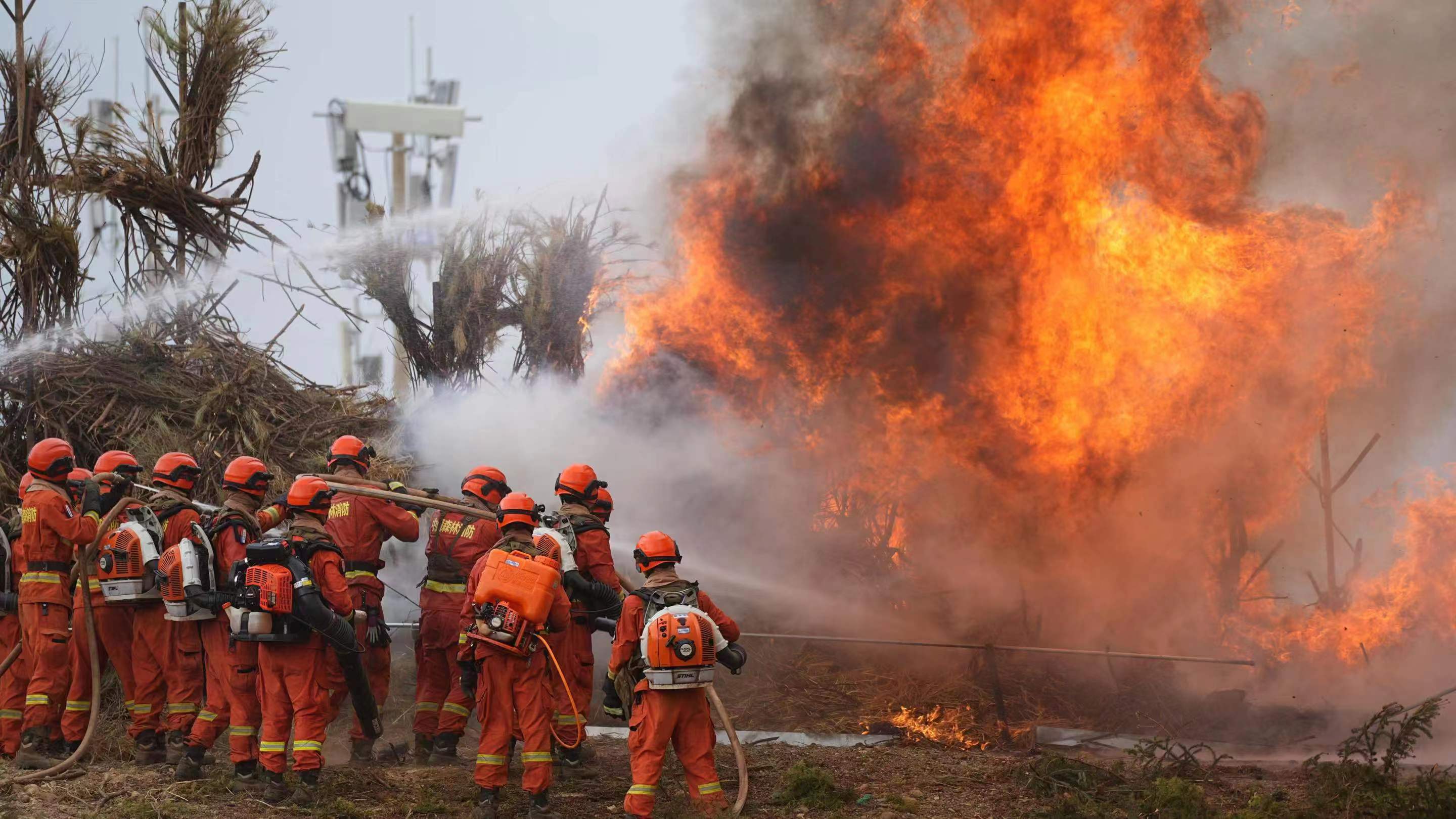 本次演習(xí)模擬的是麗江市玉龍縣發(fā)生一起7.6級(jí)地震,由此引發(fā)的連鎖反應(yīng)造成了中緬油氣管道泄漏,西電東送輸變電站線路損毀,森林火災(zāi)等多項(xiàng)災(zāi)害。其中,最為危險(xiǎn)的莫過(guò)于急速爆燃的飛火在“高山峽谷”間肆意飛竄。