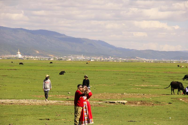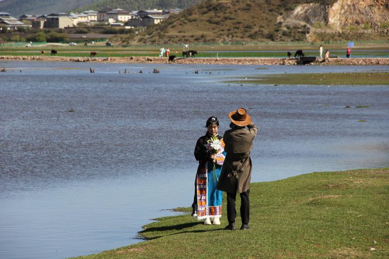 伴隨著立夏過后的第一場(chǎng)雨雪,迪慶高原綠意更濃。納帕海湖畔更添一分高原夏日氣息,碧藍(lán)的湖水、翠綠的草原和自由行走在草原上的牛羊是高原獨(dú)特的風(fēng)景線。深深吸引著來自五湖四海的游人駐足觀賞。雖然“五一”假期已過,但前往納帕海游玩的游客并沒有減少,不少游客表示是特意前往這里感受草原風(fēng)光、拍照留念的。