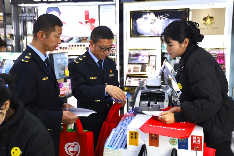 啟動(dòng)儀式結(jié)束后,市場監(jiān)督管理部門的工作人員為現(xiàn)場群眾發(fā)放并講解宣傳冊,同時(shí)為化妝品經(jīng)營商進(jìn)行上門普法,規(guī)范企業(yè)經(jīng)營行為。
