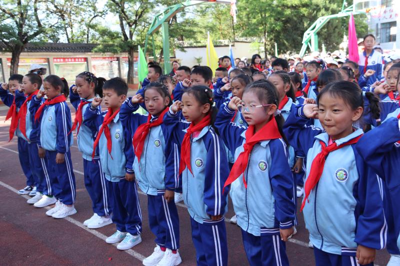 上午8點30分,活動正式開始,升國旗、唱國歌、行隊禮,孩子們激動的心情溢于言表。在新隊員入隊儀式上,共有138名學生加入光榮的中國少年先鋒隊組織,老隊員們?yōu)樗麄兣宕骷t領(lǐng)巾,鮮艷的紅領(lǐng)巾在新隊員的胸前飄揚,也在燦爛的朝陽下熠熠閃光。隨后,該校對獲得“2022—2023年度“優(yōu)秀少先隊員”“優(yōu)秀班干部”“紅領(lǐng)巾一星獎?wù)聵s譽”的同學進行了表彰。最后,學校舞蹈社團的孩子們?yōu)榇蠹規(guī)砭实母栉璞硌?,把整個活動推向高潮。 (張燕 攝影報道)