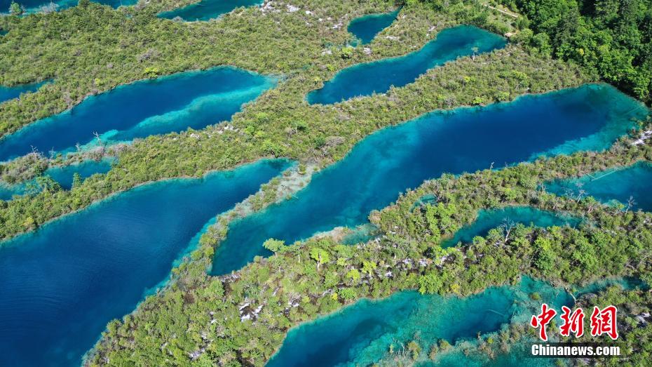 6月8日,初夏時節(jié),世界自然遺產(chǎn)地九寨溝景區(qū)風景如畫,吸引眾多游客觀光游玩。安源 攝