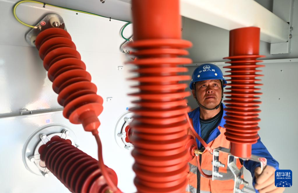 6月10日,中鐵八局施工人員在海西蒙古族藏族自治州德令哈市中國華電50萬千瓦光伏項目現場進行檢查。 新華社記者 張宏祥 攝