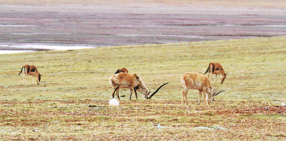 “這幾年,一個(gè)明顯的感覺是雨水多了,天氣熱了,草的長勢比往年要好些。藏野驢和黃羊很常見,鷹也越來越多了。記得小時(shí)候很少見到的野牦牛和棕熊,現(xiàn)在時(shí)不時(shí)會(huì)在草場出沒?!贝纬啥嗾f。