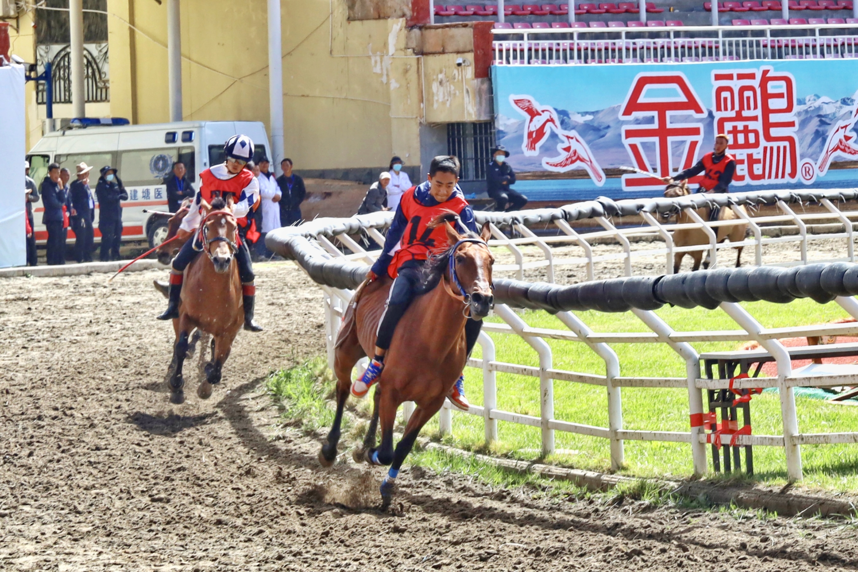 “我的馬剛比完賽,需要護(hù)理一下。”6月23日上午,剛結(jié)束香格里拉端午賽馬節(jié)乙組1000米速度賽馬項(xiàng)目,魯茸汪小顧不上自己休息,便急忙喘著粗氣往帳篷方向趕去,給馬腿綁上護(hù)具、敲開凍好的冰塊、給馬腿冰敷……行云流水的完成一系列操作后魯茸汪小才安下心來,“剛進(jìn)行了極速的奔跑,馬腿會(huì)有一些脹筋、關(guān)節(jié)腫脹等問題,需要用冷水沖洗、冰敷,不然它會(huì)很難受?!濒斎淄粜〗忉尩馈?/p>