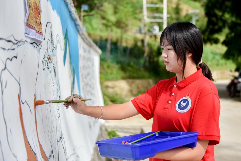 環(huán)境提升美人心。學(xué)院建筑與工藝技術(shù)系及院團(tuán)委師生共20人到定點(diǎn)幫扶點(diǎn)拉日村阿尺瑪?shù)走M(jìn)行鄉(xiāng)村風(fēng)貌美化工作,開展以黨建、推廣普通話及傈僳族文化為主題的墻面繪畫,累計完成400平米的墻繪,推動農(nóng)村人居環(huán)境提升,讓鄉(xiāng)村面貌煥然一新。