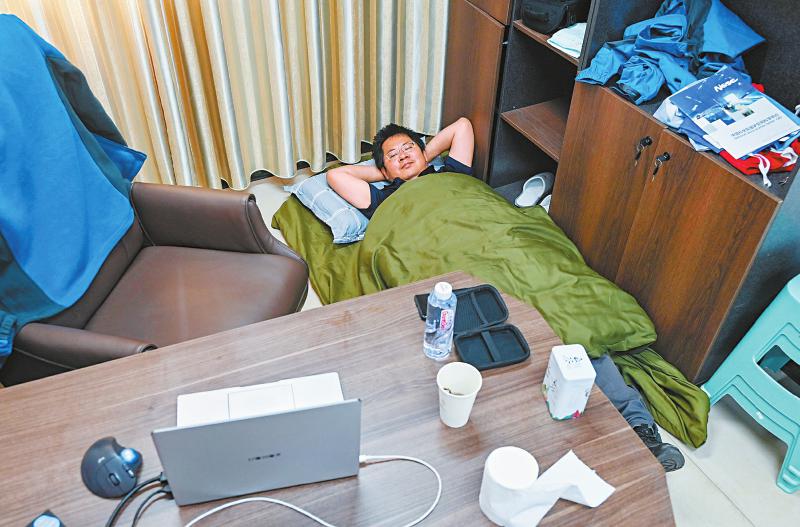 7月8日中午,子午工程二期圓環(huán)陣太陽射電成像望遠鏡項目副主任設(shè)計師武林抓緊時間在辦公室午休。