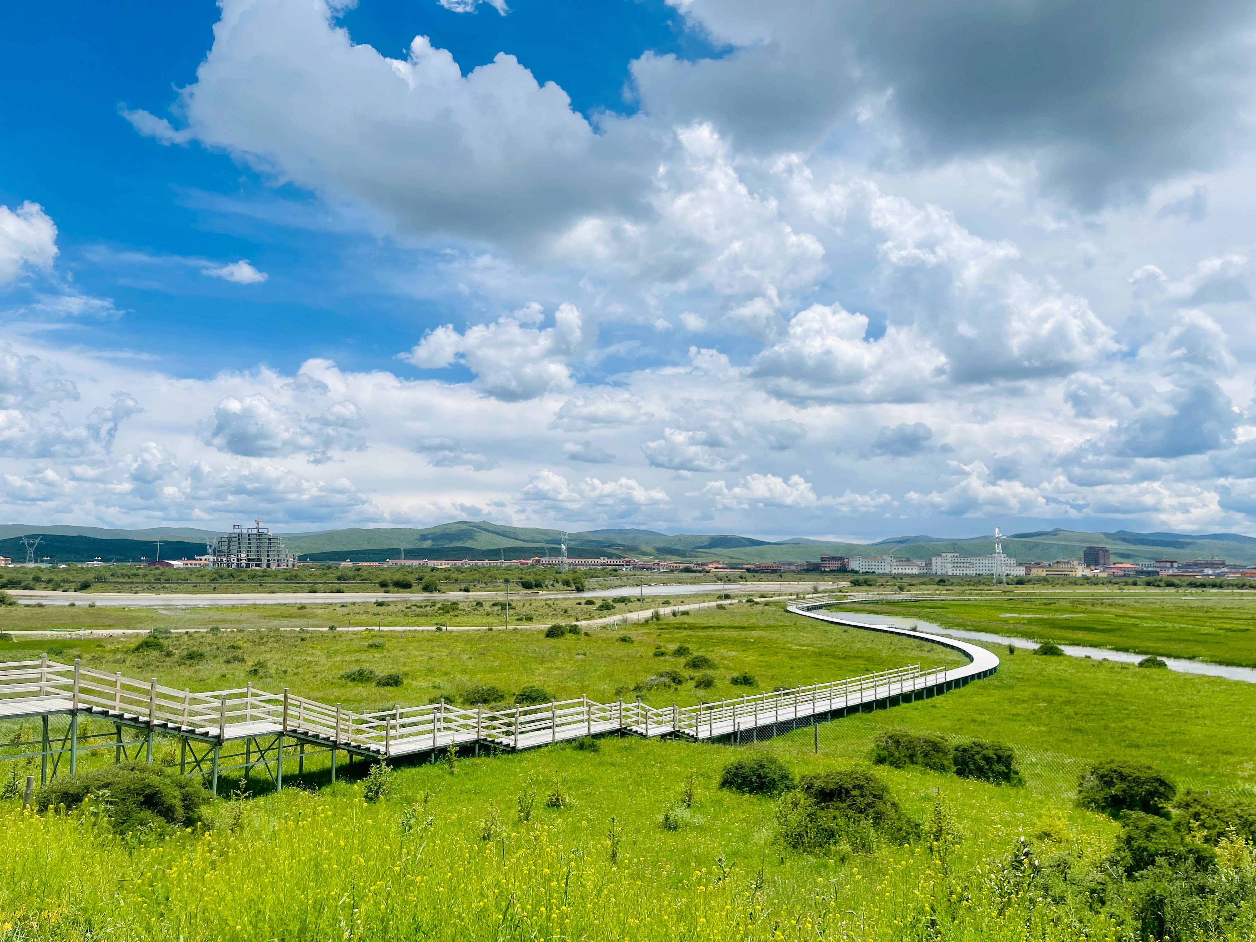 走在紅原縣牦?,F(xiàn)代農(nóng)業(yè)園區(qū)里,就像身處童話故事, 藍(lán)天白云之下,草原一望無際,風(fēng)景美得讓人沉醉。