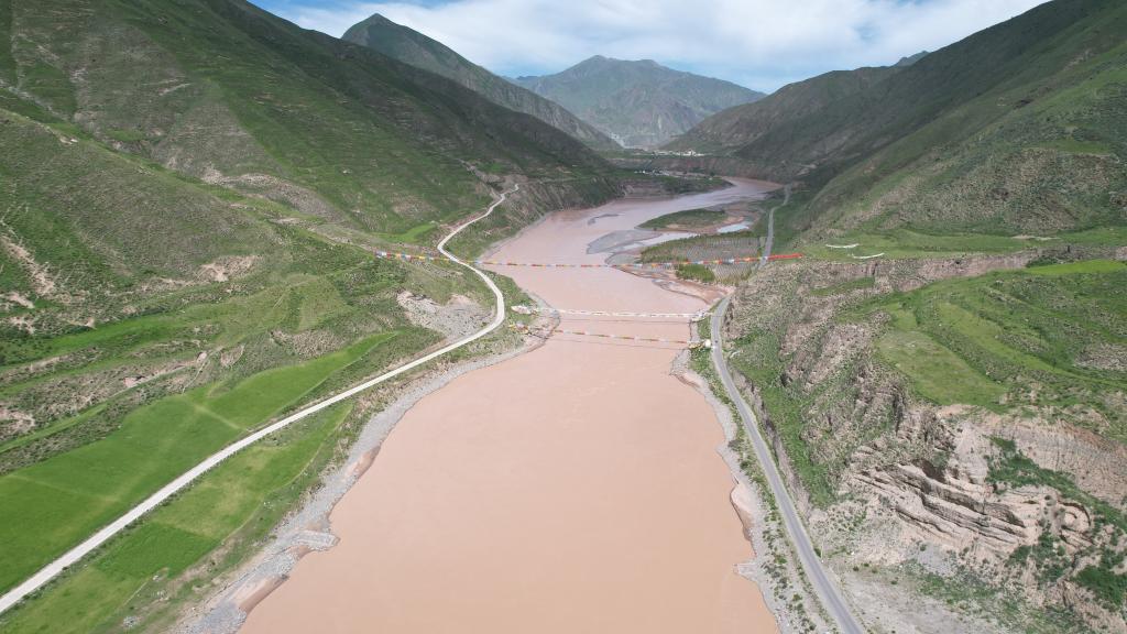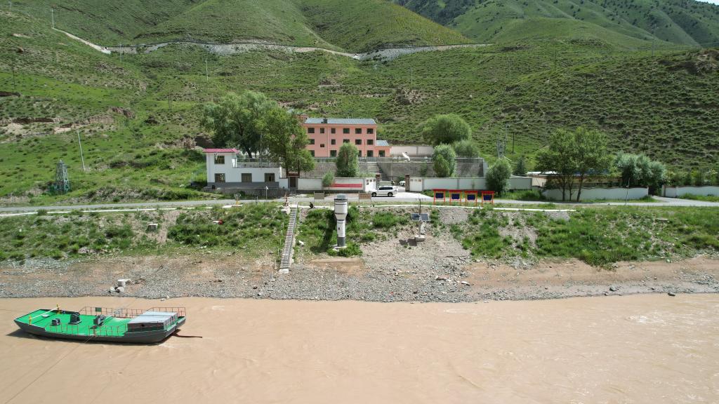 這是7月22日拍攝的通天河直門達(dá)水文站(無(wú)人機(jī)照片)。新華社記者 劉詩(shī)平 攝