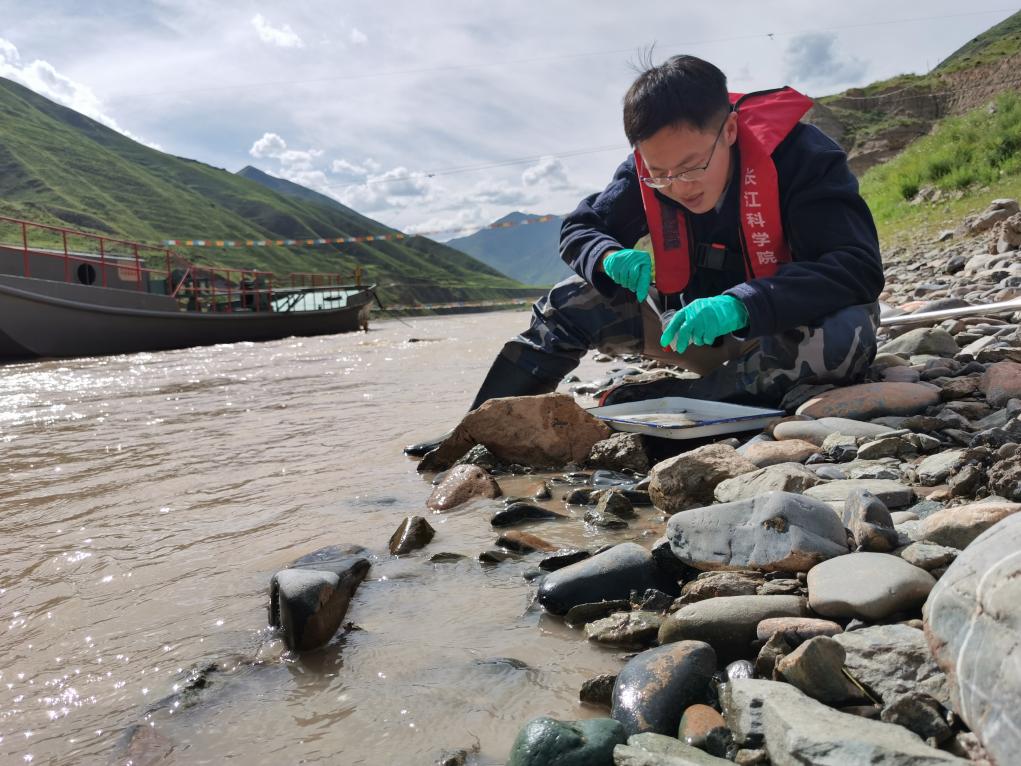科考啟動(dòng)當(dāng)天,長(zhǎng)江科學(xué)院河流所、水環(huán)境所等科研單位的科考隊(duì)員在直門達(dá)河段進(jìn)行了懸移質(zhì)泥沙和河床沉積物、浮游生物等樣品的取樣。