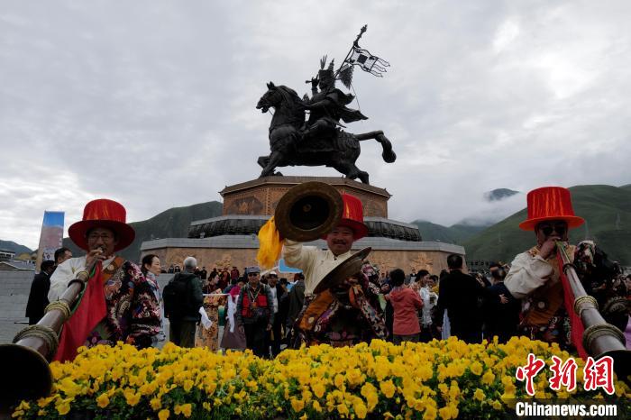圖為玉樹市格薩爾廣場(chǎng)的藏族傳統(tǒng)器樂表演。陸江濤 攝