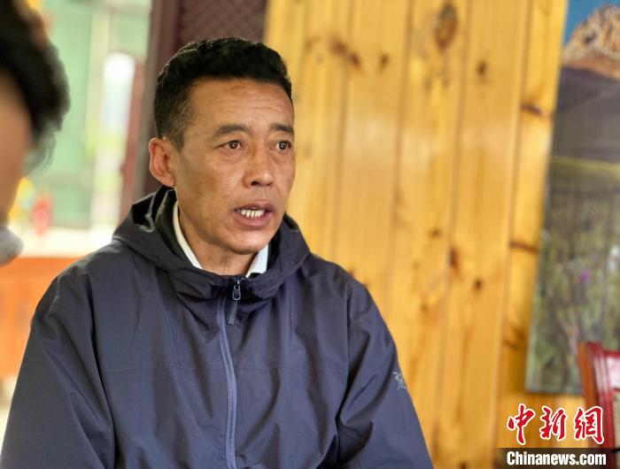 圖為三江源國家公園長江源園區(qū)曲麻萊管理處生態(tài)環(huán)境和自然資源管理局局長尕塔正在向記者介紹拉覺悟生態(tài)教育站建設情況。劉洋 攝