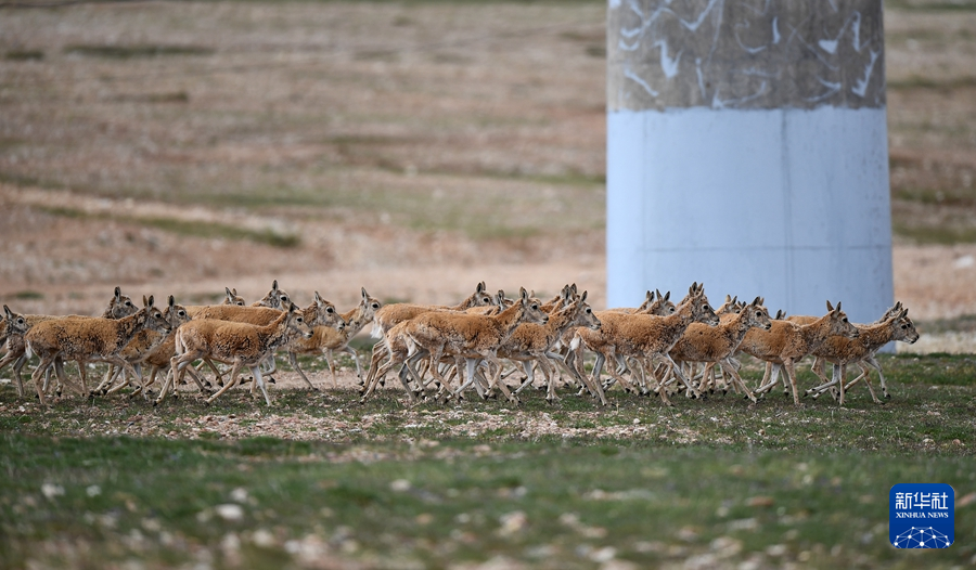 7月28日,一群藏羚羊在青藏鐵路沿線活動。新華社記者 張宏祥 攝