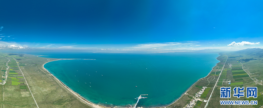這是8月2日拍攝的青海湖。(無人機(jī)全景照片)新華網(wǎng) 郭勇良 攝