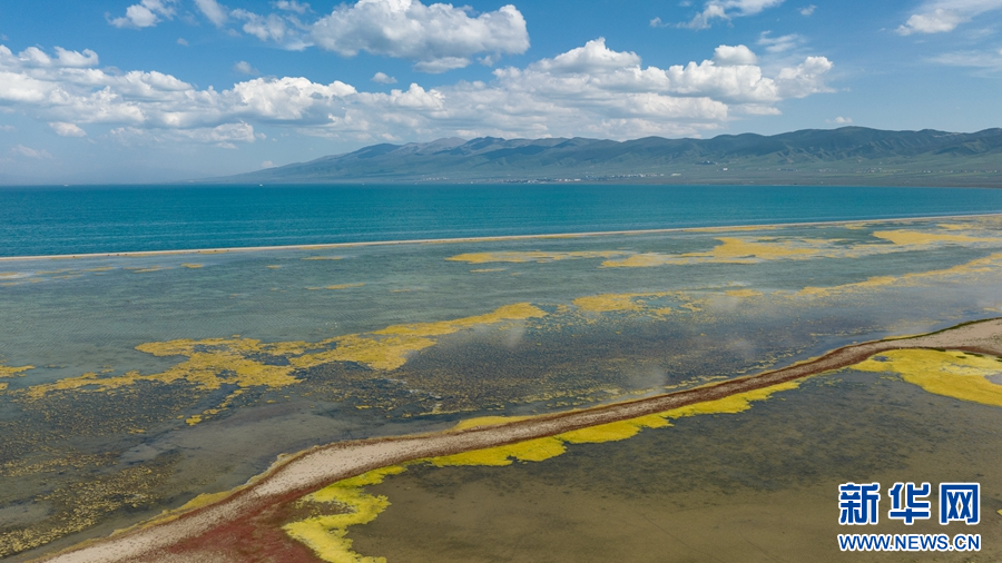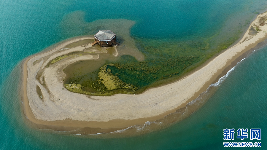 這是8月2日拍攝的青海湖二郎劍景區(qū)二郎劍半島一角。(無人機(jī)照片)新華網(wǎng) 郭勇良 攝