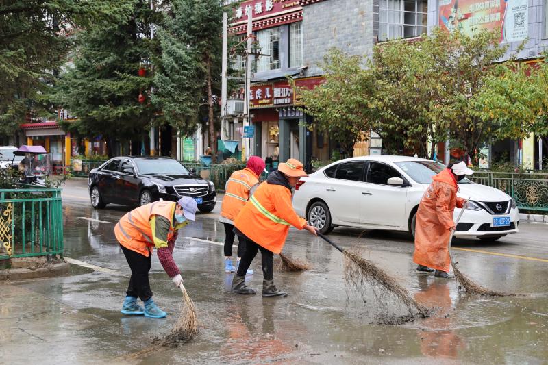 為盡快恢復城區(qū)潔凈容貌,香格里拉市和祥環(huán)??萍加邢挢熑喂玖⒓唇M織環(huán)衛(wèi)工人30名,抽調高壓水車2輛、掃地車4輛,積極開展道路清淤工作,同時對下水道水口周邊的樹枝、雜物等進行清理清運。經(jīng)過近五小時的連續(xù)作業(yè),成功恢復道路暢通整潔。