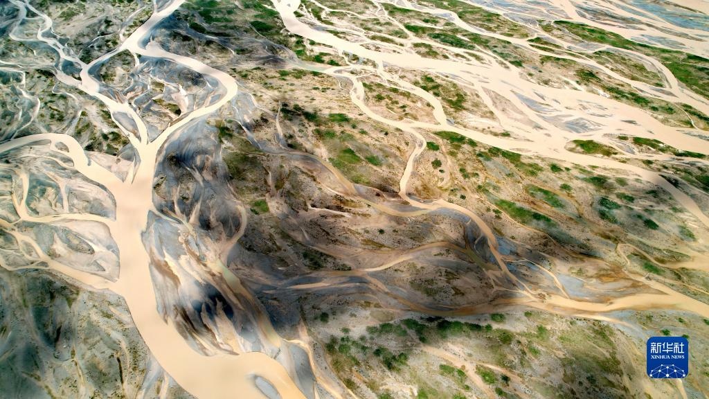 在沱沱河與當(dāng)曲匯合處的囊極巴隴拍攝的辮狀河道局部(7月26日攝,無(wú)人機(jī)照片)。新華社記者 劉詩(shī)平 攝