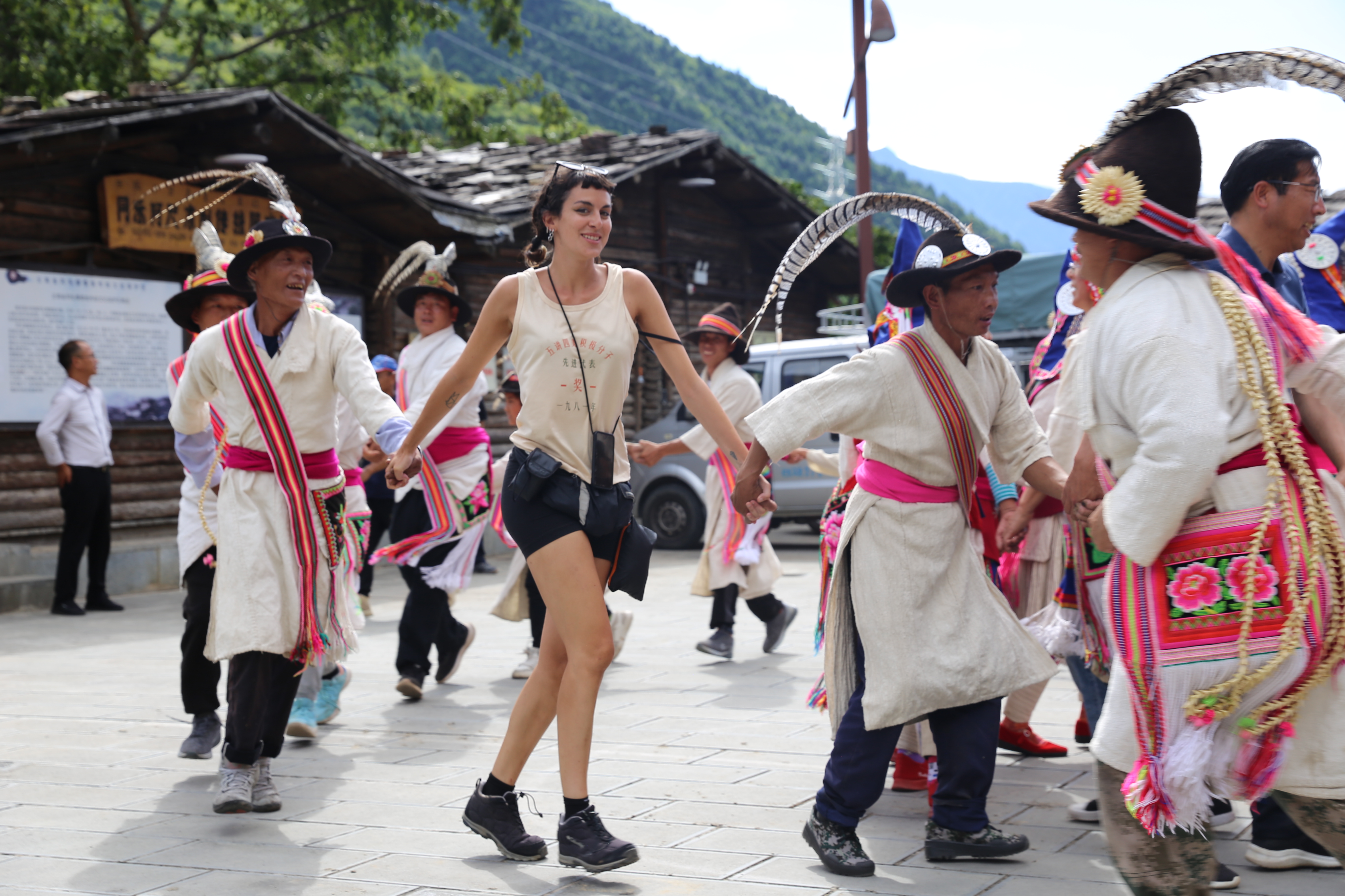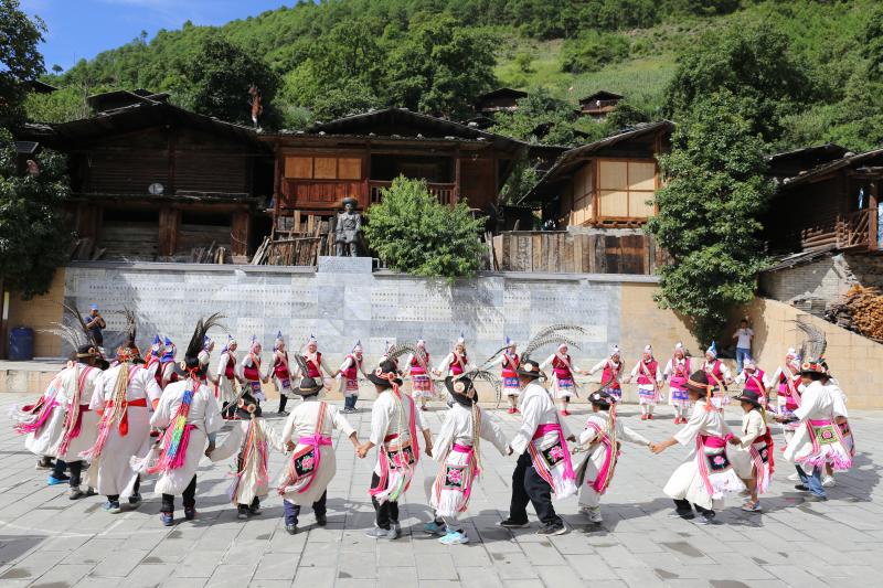 8月14日,維西縣葉枝鎮(zhèn)同樂村村民身著盛裝,跳起傈僳族特色民間歌舞阿尺目刮,歡迎遠(yuǎn)道而來的客人。