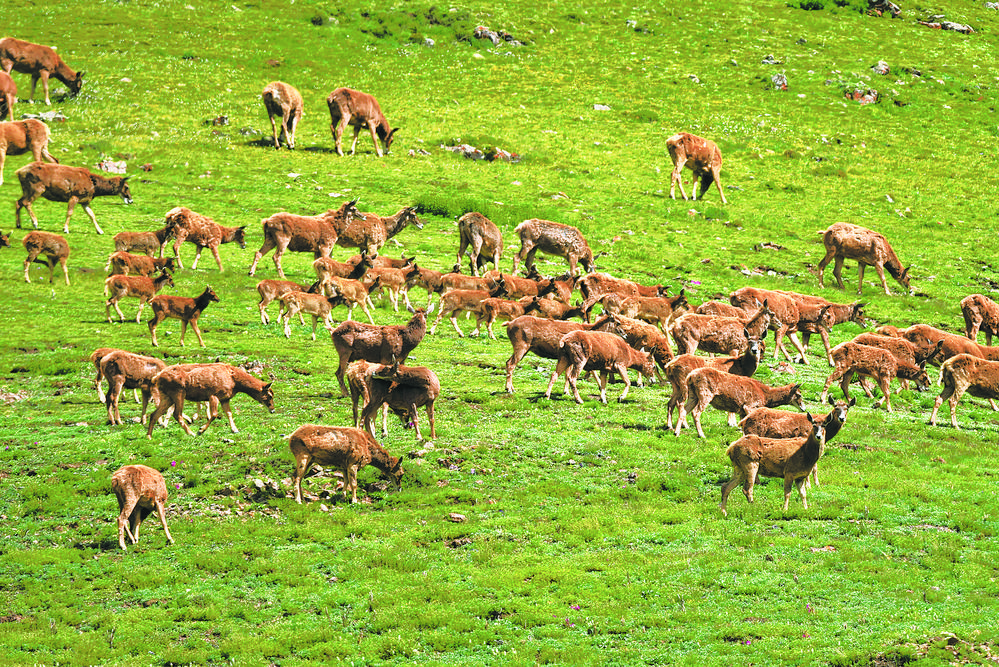 高山上的白唇鹿。張多鈞 攝
