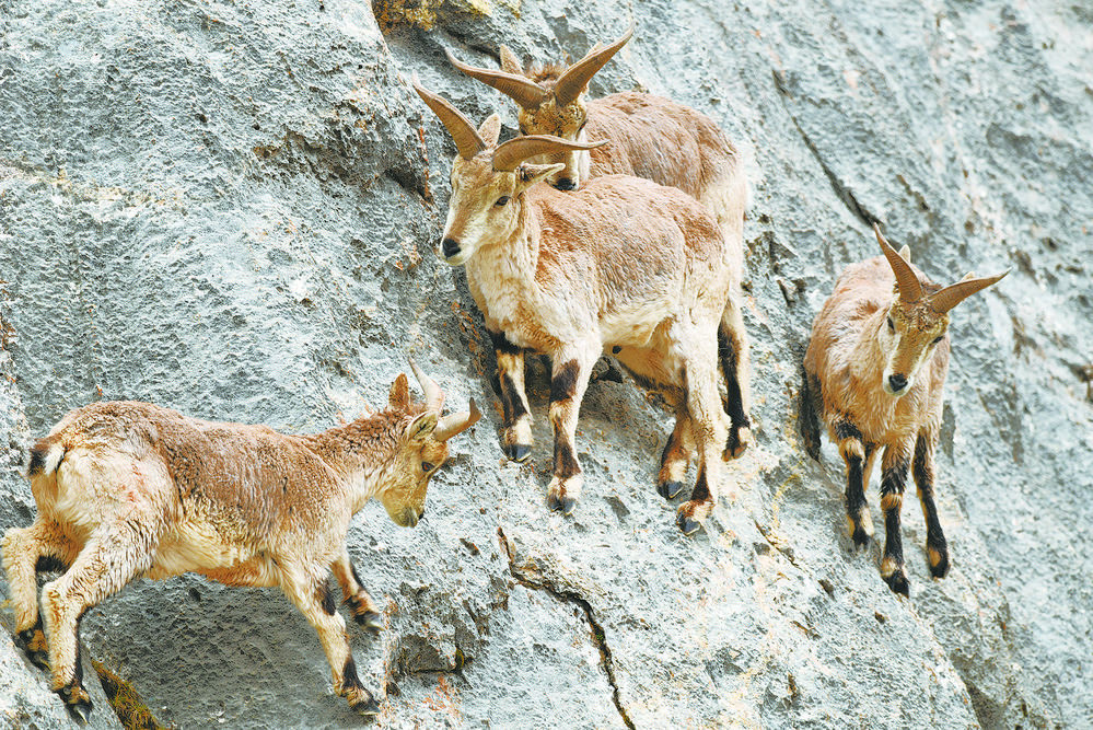 雪豹是山地黑夜的王者,崇山峻嶺間的山巖是它的專屬領(lǐng)地,它棲息在山巖朝陰的崖壁上。因此,次丁三人拍攝雪豹時會格外關(guān)注山巖朝陰的崖壁。