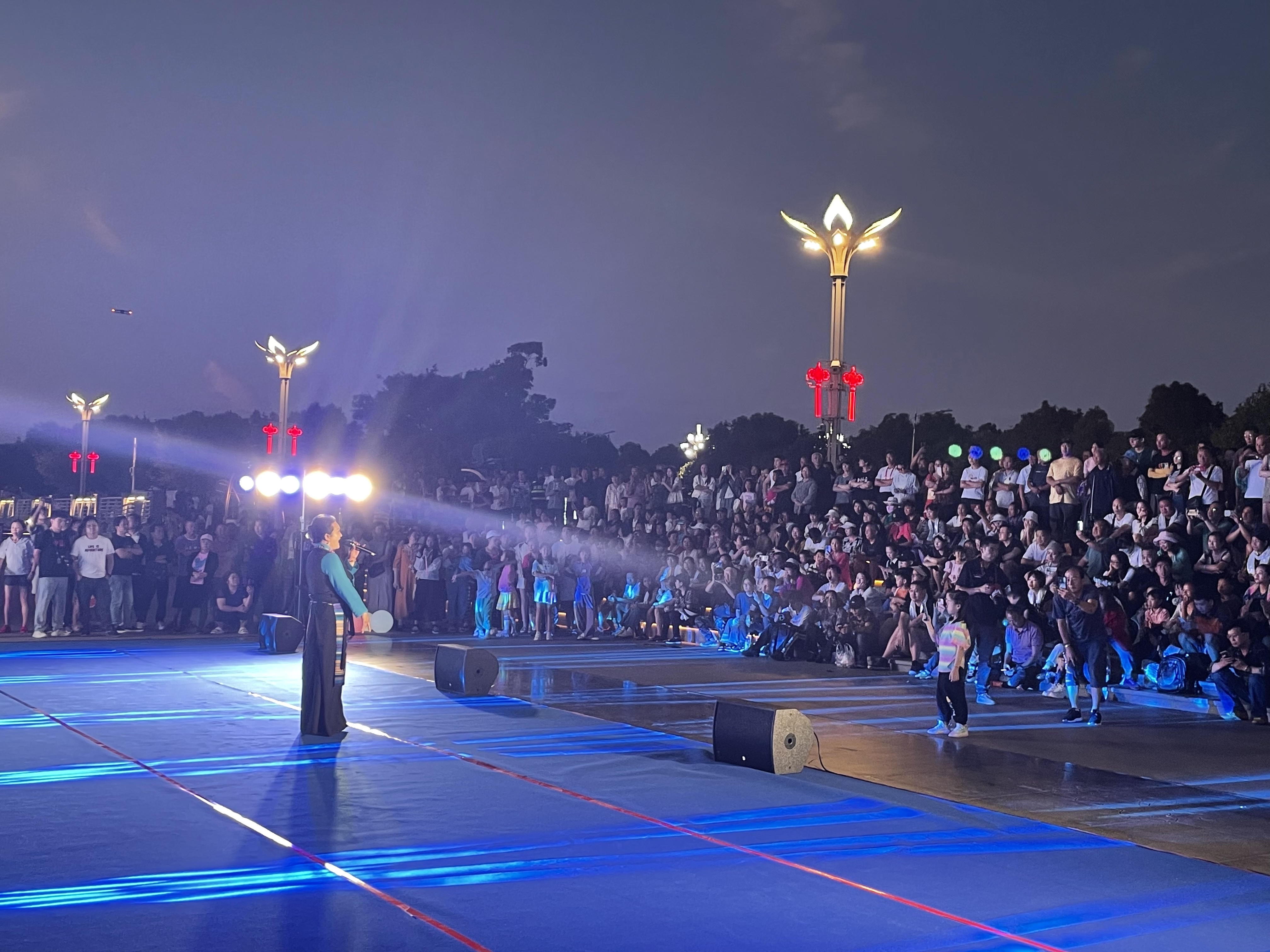 現(xiàn)場,迪慶州文化館的演員們用婉轉(zhuǎn)的歌聲、優(yōu)美的舞姿,為現(xiàn)場觀眾帶來了一場視聽盛宴。開場舞蹈《歡天喜地》以悠揚的旋律、奔放的舞步,瞬間引起了現(xiàn)場群眾的關(guān)注和歡呼。大家紛紛打開相機,留下美好的瞬間。在接下來一個半小時的演出中,舞蹈《香格里拉鍋莊》《阿尺目刮》、弦子演奏《熱芭》、歌曲《卓瑪拉》《維西歡迎您》等精彩節(jié)目輪番上演,全方位詮釋了“奮進迪慶”的獨特魅力,為現(xiàn)場觀眾獻上了一場融地方文旅特色和藝術(shù)內(nèi)涵于一體的視聽盛宴,加深了大家對迪慶的印象。