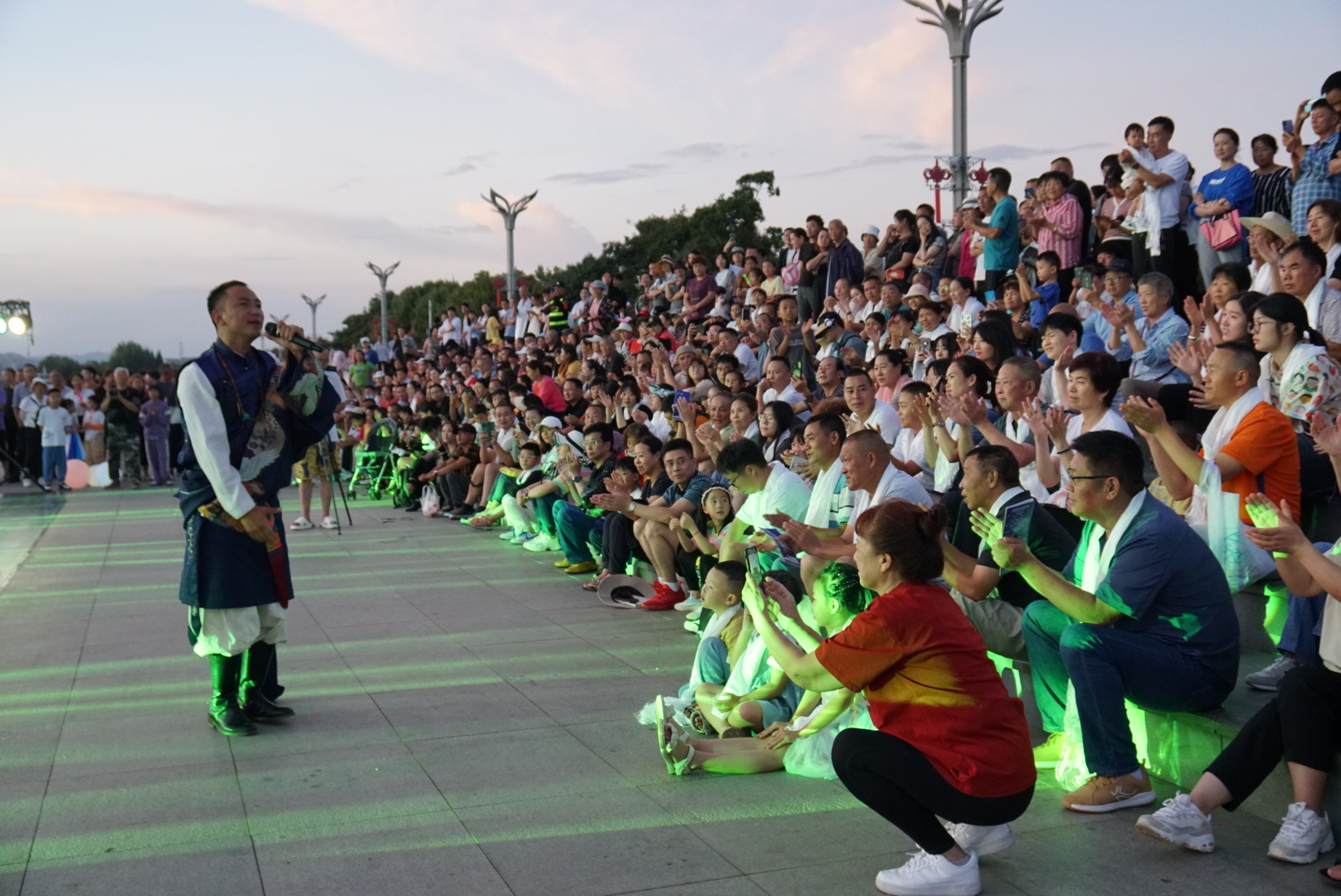 演出結(jié)束后,在演員的領(lǐng)舞下,大家圍成圈,共同感受迪慶鍋莊文化,昆明海埂大壩瞬間被歡樂點燃,活動進入高潮。