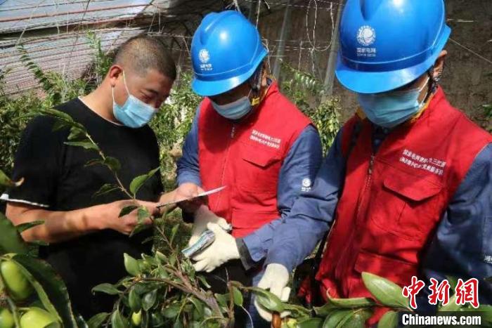 圖為國家電網(wǎng)青海電力三江源(海西德令哈)共產(chǎn)黨員服務(wù)隊在蔬菜大棚為客戶講解“互聯(lián)網(wǎng)+”供電服務(wù)。國網(wǎng)海西供電公司供圖