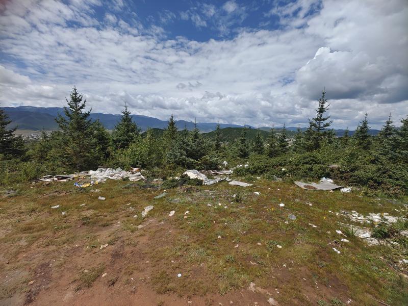 五鳳山登山健身步道全長約13公里,沿線森林茂密,溪水潺潺,景色優(yōu)美,登高而上可遠(yuǎn)眺石卡雪山、香格里拉城區(qū)全景,穿越埡口、牧場,是市民健身休閑的好去處。尤其夏季以來,香格里拉氣候舒適,每到周末,不少人選擇走進(jìn)山林露營小憩、采摘野生菌,感受大自然的樂趣,然而,同他們一同闖入林中的還有各種被丟棄的垃圾,這些不文明的現(xiàn)象也成為了美景中的“內(nèi)傷”。