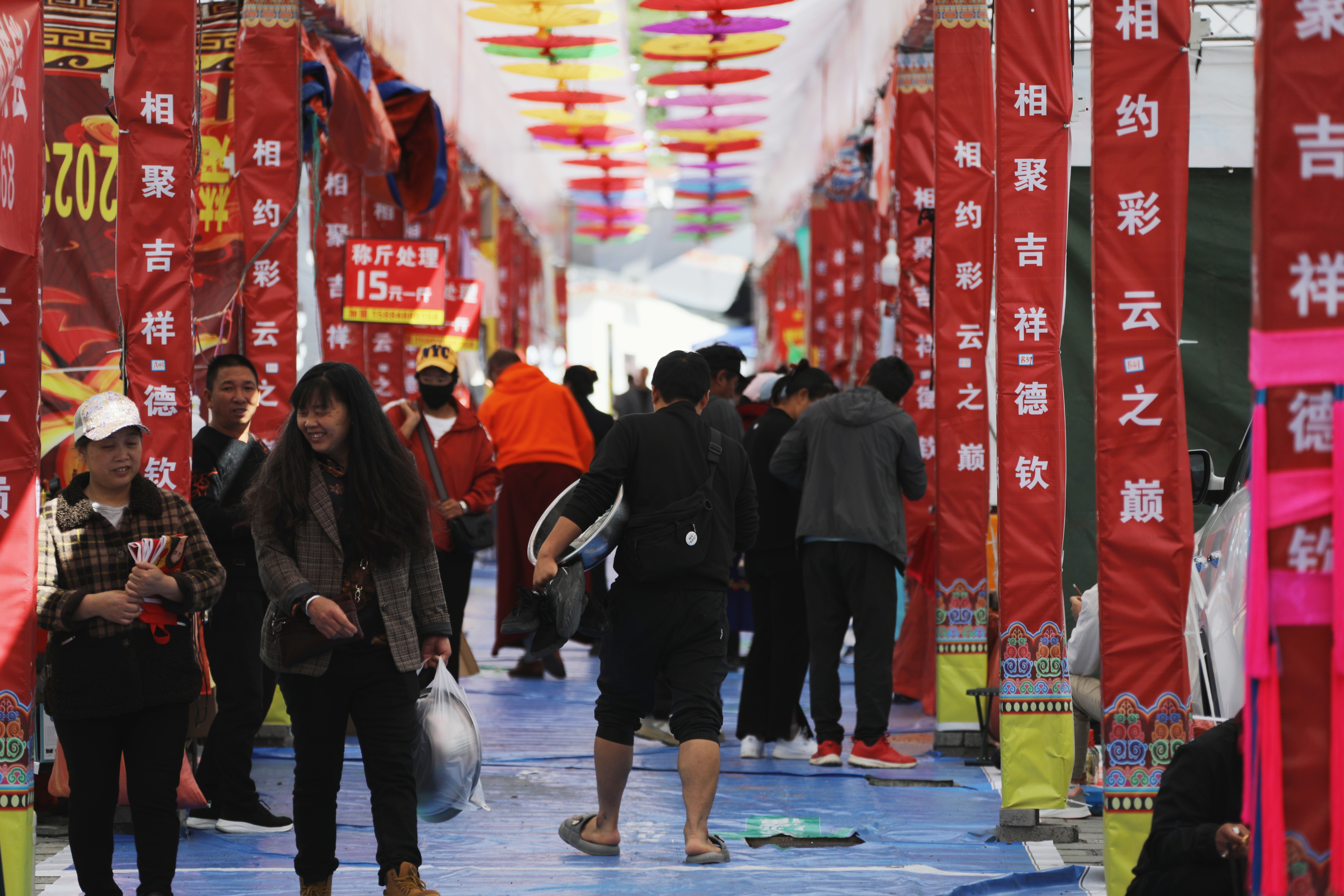 9月1日,迪慶州第14個(gè)民族團(tuán)結(jié)進(jìn)步月德欽系列活動(dòng)之德欽縣農(nóng)特產(chǎn)品展銷會(huì)正式拉開序幕,成為不少市民茶余飯后必去的打卡點(diǎn),特別是晚飯過后,現(xiàn)場(chǎng)人聲鼎沸,熱鬧異常。