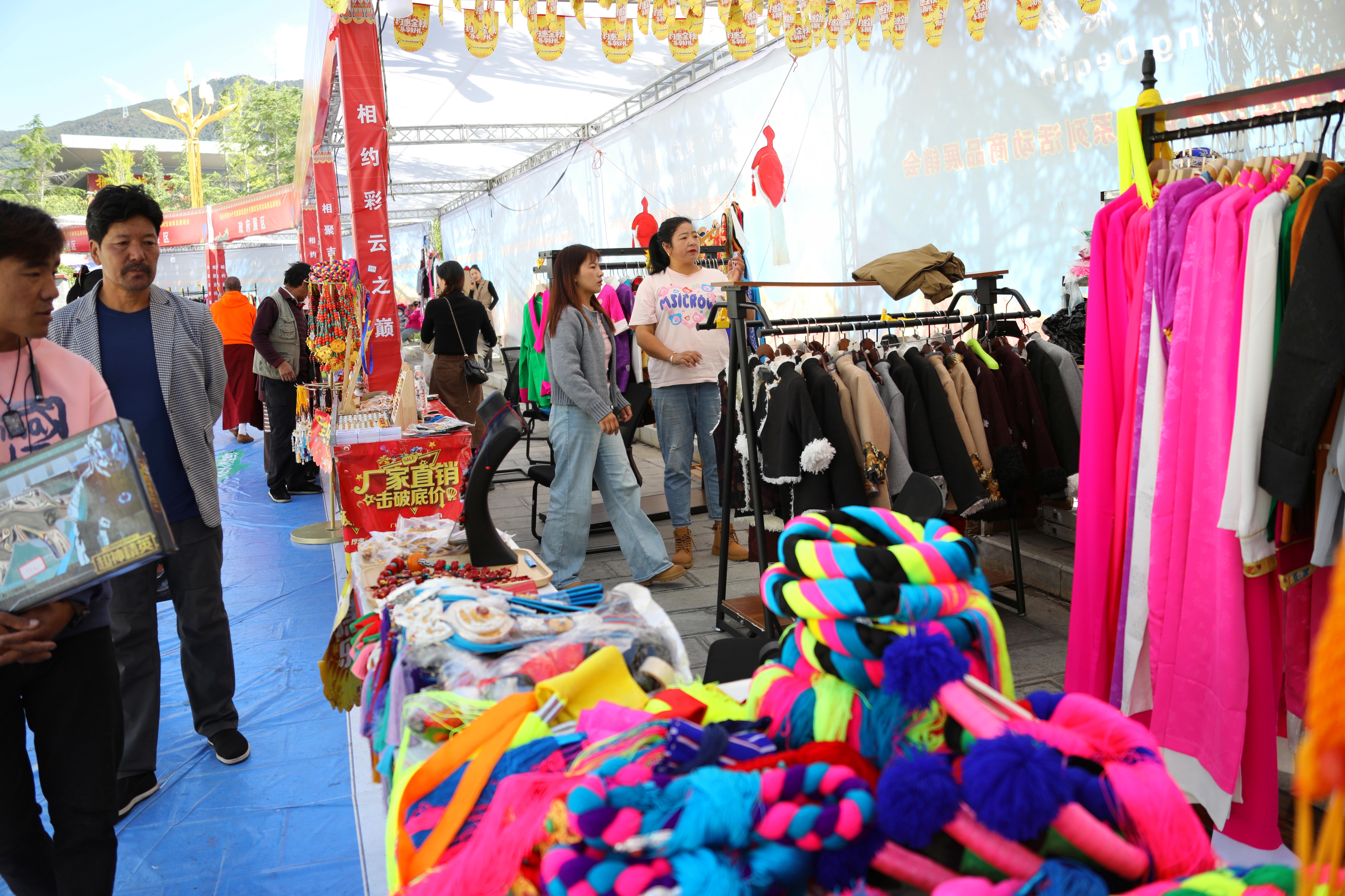 本次展銷會(huì)有來自德欽縣的24家企業(yè)和近百家外地客商參加,將從9月1日持續(xù)到12日。本地農(nóng)特產(chǎn)品包括銀制品及木碗等工藝品、藏族服飾、特色農(nóng)特產(chǎn)品。外地客商帶來的各種生活用品一應(yīng)俱全,還有服裝供大家挑選、美食供大家品嘗。臨時(shí)搭建起來的游樂場(chǎng)更是深受孩子們的歡迎。