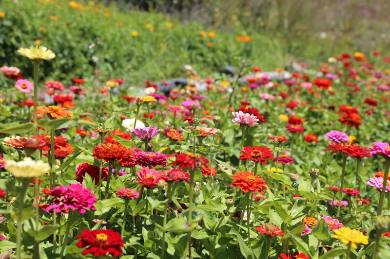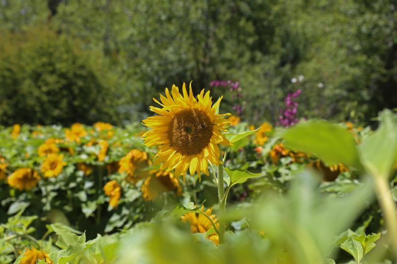田間萬(wàn)壽菊、百日菊、黑心菊、向日葵等簇?fù)硎⒎?,萬(wàn)里晴空下,朵朵菊花在秋風(fēng)中搖曳生姿,蜜蜂飛舞、蝴蝶翩躚,繪出了一幅色彩繽紛的秋日畫(huà)卷,令人賞心悅目。