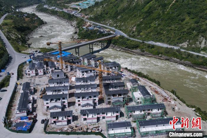 9月4日,四川甘孜州瀘定縣德威鎮(zhèn)奎武安置點,房屋重建項目熱火朝天。中新社記者 劉忠俊 攝