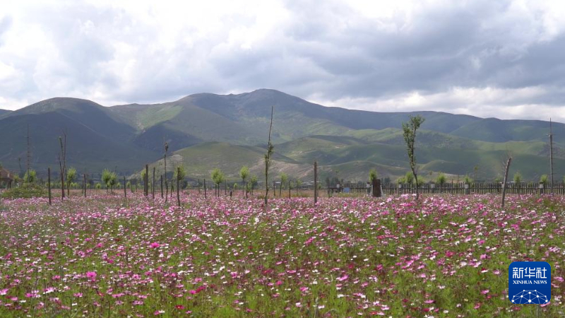 難以置信的是,這里曾是一片沙化嚴重的草場,當?shù)卮迕窨總鹘y(tǒng)放牧已難以為繼。2016年以來,當?shù)卣脤嵤┥鷳B(tài)治理工程的契機,整合涉農(nóng)涉旅資金,大面積種植格桑花,打造出近1600畝的色拉花海。